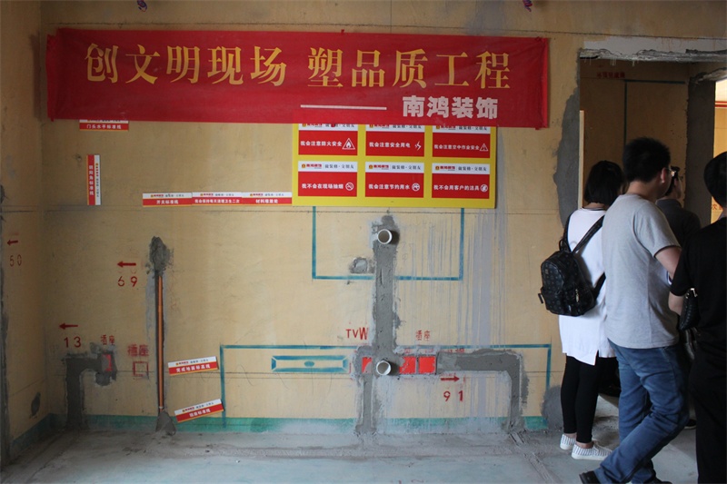 4月16日下午,杭州室外溫度高達(dá)31℃,太陽(yáng)的熱情灼傷了行人的頭發(fā)。南鴻裝飾帶著20多組來(lái)自德信錢江府的業(yè)主坐著大巴來(lái)到城西金茂悅參觀南鴻在建工地的水電、泥工、木工、油漆四個(gè)環(huán)節(jié),聽工程監(jiān)理的講解,零距離觀察南鴻工地!離開工地后直奔君尚大酒店,聽各位設(shè)計(jì)師對(duì)錢江府的戶型分析講解,看免費(fèi)設(shè)計(jì)方案!