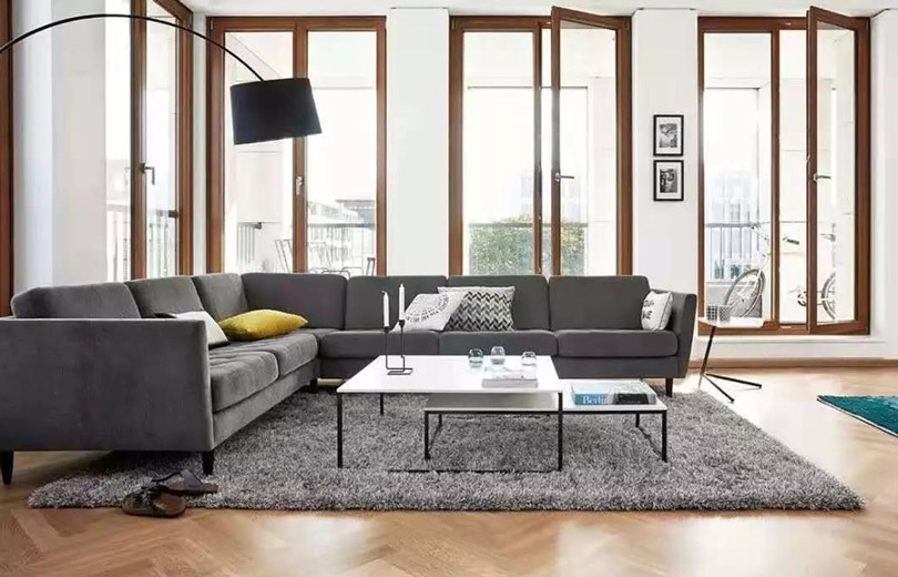 L型沙發(fā)+方幾是萬能搭配,無論怎樣都不會錯。